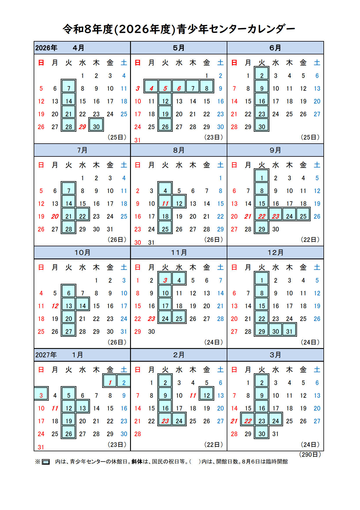 令和8年度(2026年度)カレンダー