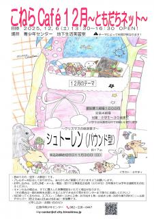 もぐらcafe第1土曜日の名称が代わりました!「こねら」とは「こねずみ」のことで小さな小さなあつまりです。 心地よい居場所となりますように・・・。 ・初めての方・見学大歓迎! ・アレルギー対応はしておりません。 ・キャンセルの場合は、購入済みの実費程度を徴収する場合があります。(その際は一部の材料をお渡しすることができるので、青少年センターまで取りにお越しください。)