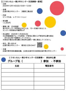 ●青少年交流事業 ビンゴ大会&レクリエーション●